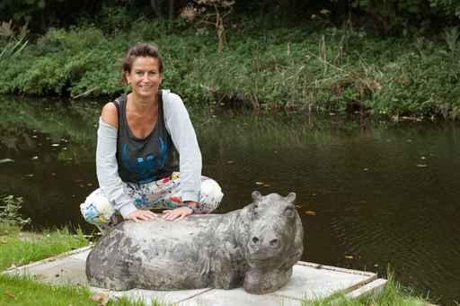 Eind 2010 begon Leoniek te experimenteren met boetseren, mallen maken en vervolgens gieten in aluminiumcement, nadat ze langere tijd niet mocht hakken in steen vanwege een gebroken pols. Het resultaat zijn de portretten van haar kinderen, gepresenteerd onder 'mensen'. Ook het nijlpaard hiernaast is zo gemaakt. Ze kreeg de smaak te pakken en laat haar boetseerwerk nu ook gieten in brons.